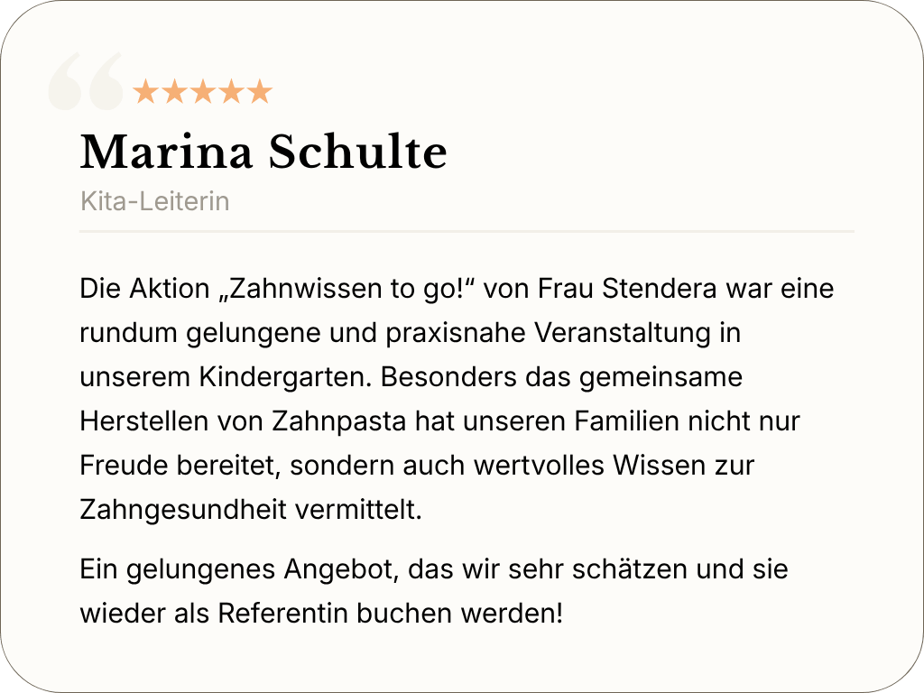 Ich unterstütze Kitas, Eltern und Fachkräfte dabei, Zahngesundheit im Alltag von Kindern verständlich und umsetzbar zu machen.