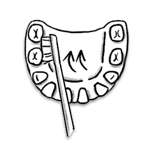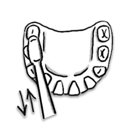 Begonnen wird am letzten Backenzahn rechts, bis zum letzten Zahn auf der linken Seite.