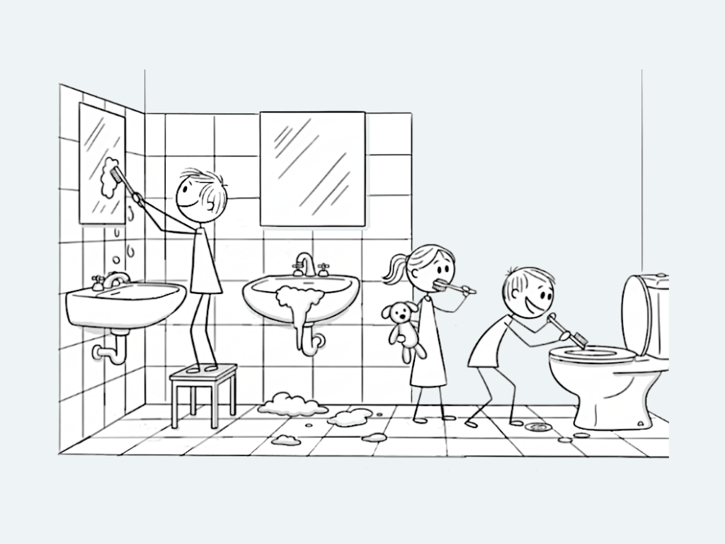 Allein der Gedanke daran, wie Kinder mit Zahnbürsten im Abfluss des Waschbeckens stochern, die Armaturen bürsten oder ihre Zahnbürsten vertauschen, sorgt für berechtigte Bedenken.